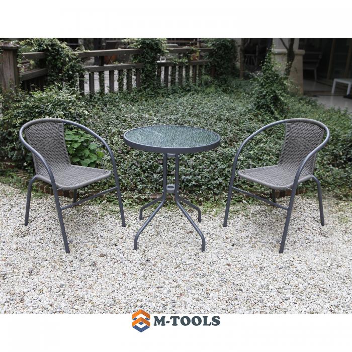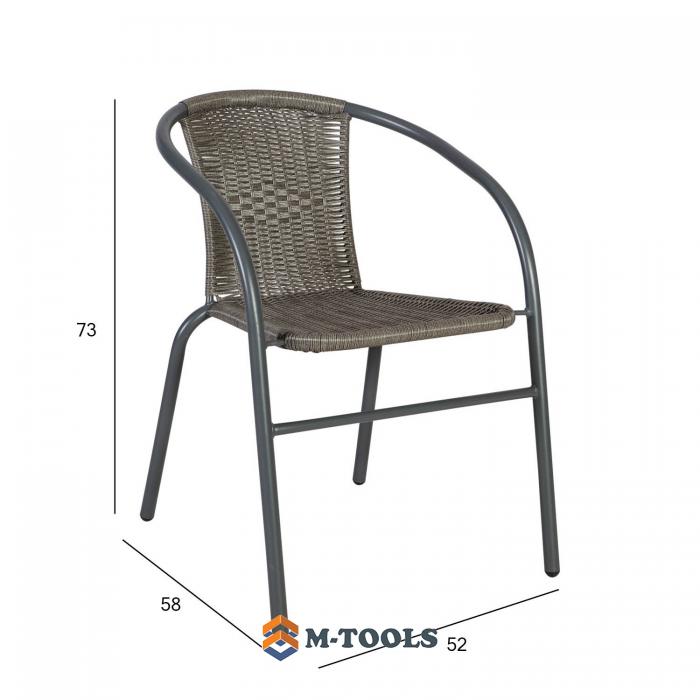 Chair BISTRO gray. The legs and frame of the chair are made of steel and finished with a gray powder coating. The seat and back of the chair are covered with brownish-gray plastic braid. The overall dimensions of the chair are 52x58xH73cm. Weight limit 100kg. The chairs are stackable and their storage is easy and space-saving. The product is durable in changing weather conditions and easy to maintain. STORAGE: at the end of the summer season, we recommend storing the garden furniture indoors. Clean and dry the furniture before storing it. Use a dry and well-ventilated room for storage. |