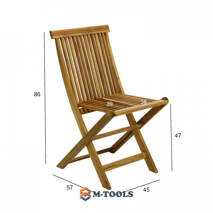 Foldable chair FINLAY 45x57xH86cm. The classic solid wood folding garden chair is a comfortable and practical choice for the garden or terrace. The chair is made of acacia wood and finished with wood preservative oil. When folded, the chair takes up little space and is easy to store and move. The overall dimensions of the chair are 45x57xH86cm, seat width 36cm, seat depth 39cm, seat height 47cm, and backrest height 46cm. Weight limit 90kg. The product is durable in changeable weather conditions. CARE: wood is a living product that changes and ages over time. Clean the furniture regularly and protect it from excess moisture and UV radiation. Light sanding and a new oil layer at least once a year are sufficient to give the furniture a fresh look. STORAGE: at the end of the summer season, we recommend storing the garden furniture indoors. Clean and dry the furniture before storing it. Use a cool, dry, well-ventilated room for storage. Protect the furniture from direct sunlight during storage. |