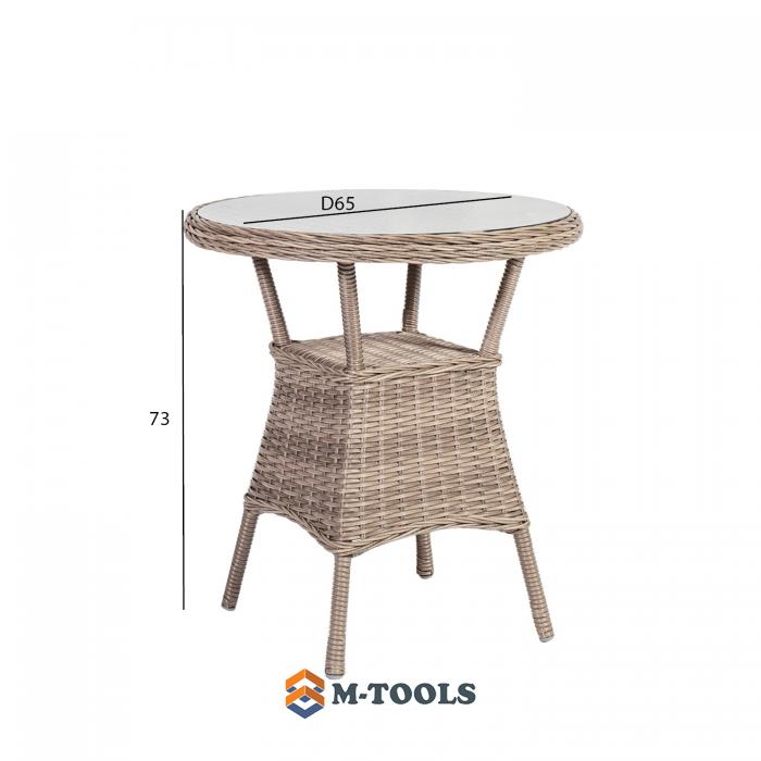 Table TOSCANA D65xH73cm, beige. Tabletop: 5mm tempered clear glass. The powder-coated aluminum frame is covered with plastic wicker. The product is durable in changing weather conditions and easy to maintain. To prolong outdoor furniture's lifespan, we recommend using outdoor furniture covers. STORAGE: at the end of the summer season, we recommend storing the garden furniture indoors. Clean and dry the furniture before storing it. Use a dry, well-ventilated room for storage. |